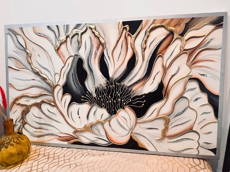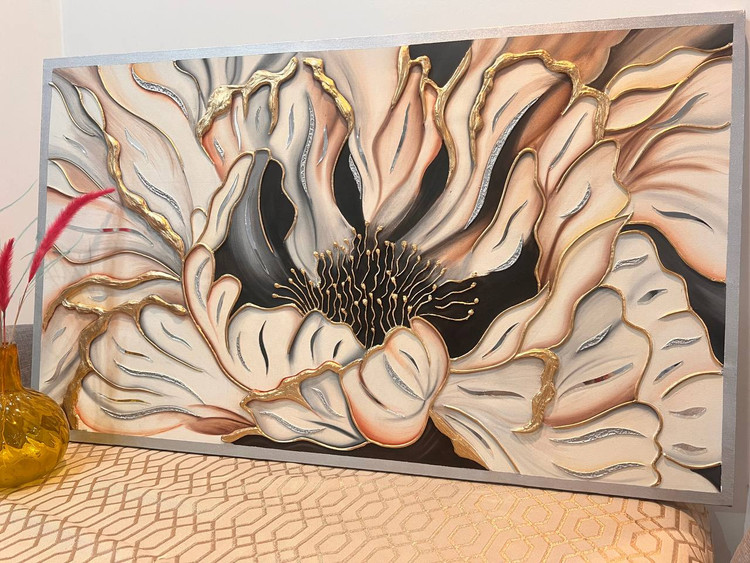 تابلو دکوراتیو برجسته کار شده با تکسچر، ورق طلا . رنگ روغن و آینه