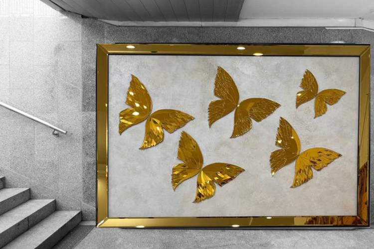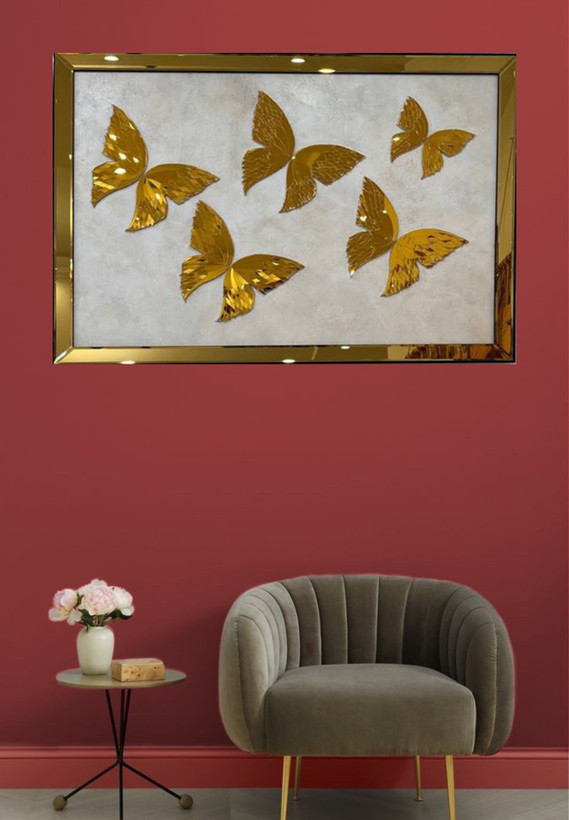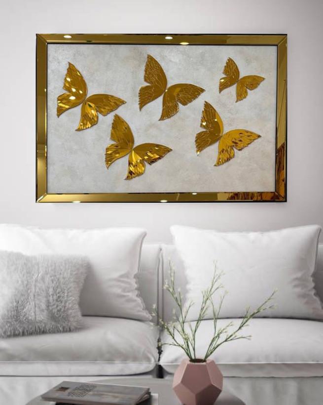 تابلو آینه کاری پرواز پروانه ها با زمینه شاین کار شده با آینه طلایی 1.2 میل و تکسچر/ قابل اجرا با آینه نقره ای و.../ قابل اجرا در سایزهای مختلف / برای سفارش در رنگ و سایز دلخواه با شماره 09357129452 تماس حاصل فرمایید.