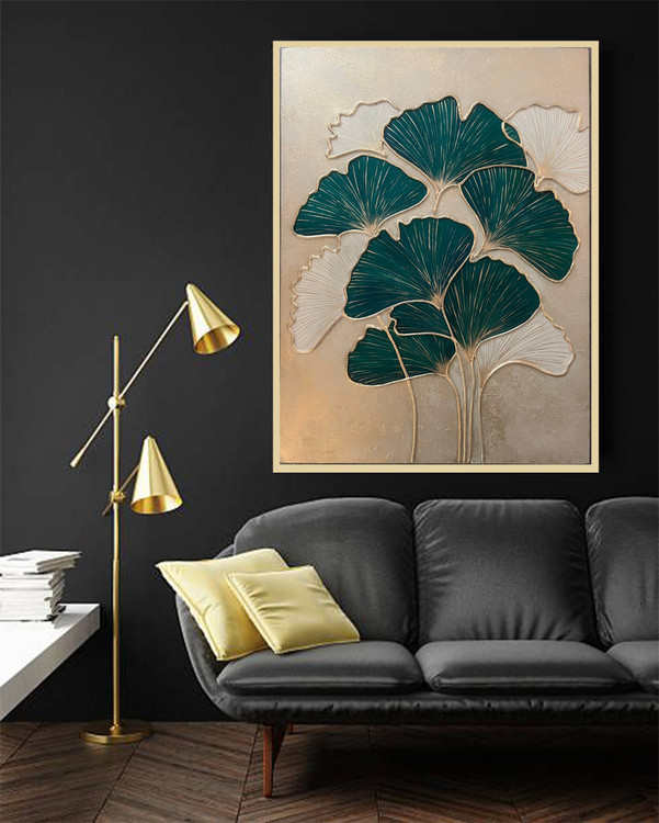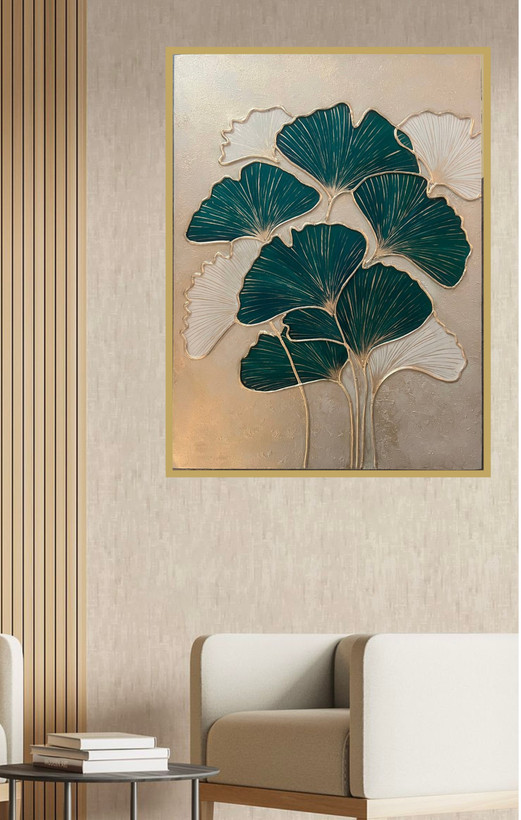 تابلو دکوراتیو برجسته گل ژینکو کار شده با تکسچر و رنگ اکریلیک و ورق طلا/ قابل اجرا در رنگ ها و ابعاد مختلف/ برای سفارش در رنگ ها و ابعاد دلخواه با شماره تماس 09357129452 تماس حاصل فرمایید.
